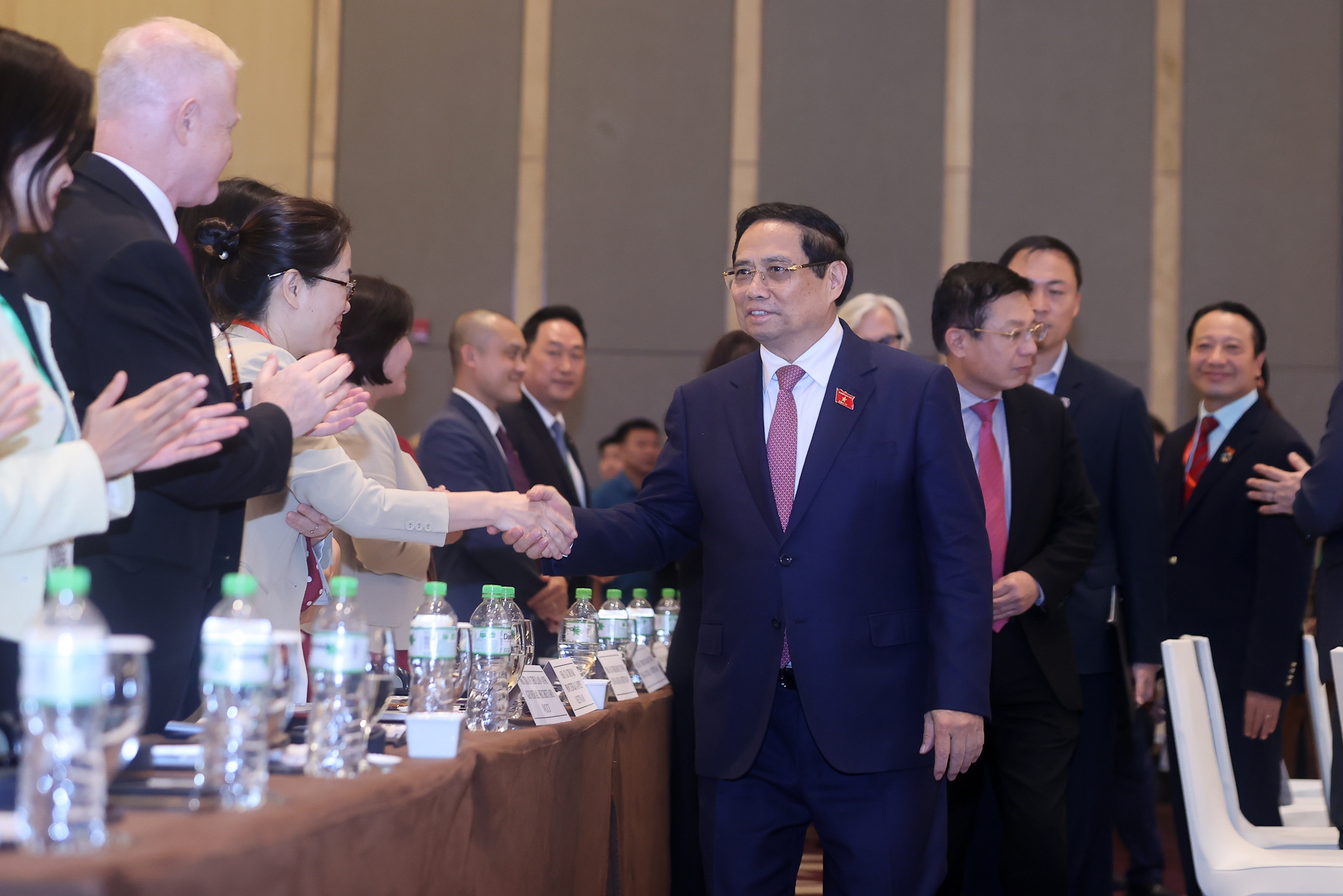 Đối với cộng đồng doanh nghiệp, nhà đầu tư FDI, Thủ tướng đề nghị mở rộng đầu tư, chuyển giao công nghệ, kết nối với doanh nghiệp Việt Nam, tham gia xây dựng thể chế, hiện đại hóa quản trị thông minh với tinh thần "Nhà nước kiến tạo, doanh nghiệp tiên phong, công tư đồng hành, đất nước giàu mạnh, nhân dân hạnh phúc, doanh nhân thụ hưởng".