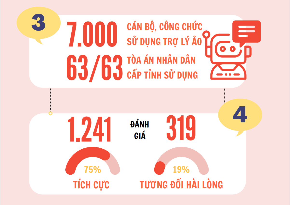 Tòa án nhân dân tối cao chủ trì, phối hợp với Bộ Thông tin và Truyền thông nghiên cứu và triển khai thử nghiệm Trợ lý ảo đóng vai trò như một thư ký riêng, am hiểu pháp luật và chuyên môn nghiệp vụ của Tòa án. Đây được coi là một bước đi có tính đột phá về chuyển đổi số trong ngành Tòa án.