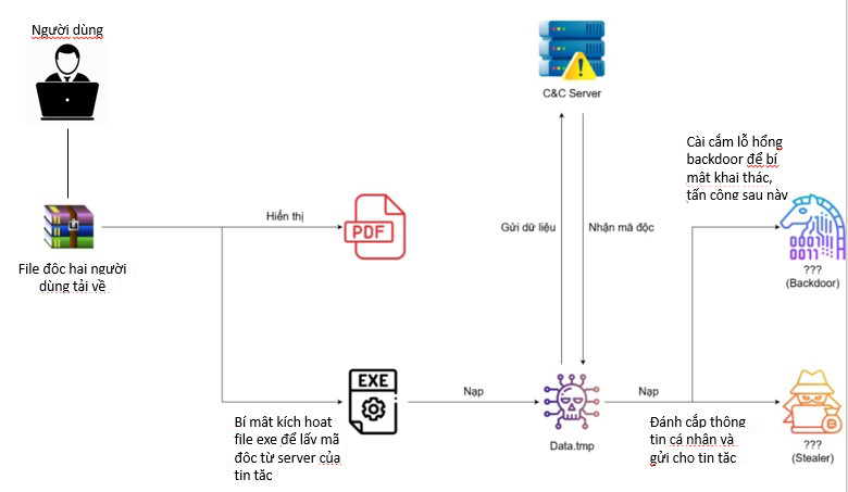 Để cảnh giác với các loại mã độc đánh cắp thông tin stealer - Stealer là một loại mã độc (malware) được thiết kế để thu thập và đánh cắp thông tin nhạy cảm từ các hệ thống bị nhiễm. Thông tin mà stealer nhắm đến thường bao gồm tài khoản, mật khẩu, số thẻ tín dụng, ví tiền điện tử và các thông tin cá nhân khác (đính kèm Sơ đồ tấn công của mã độc Stealer).