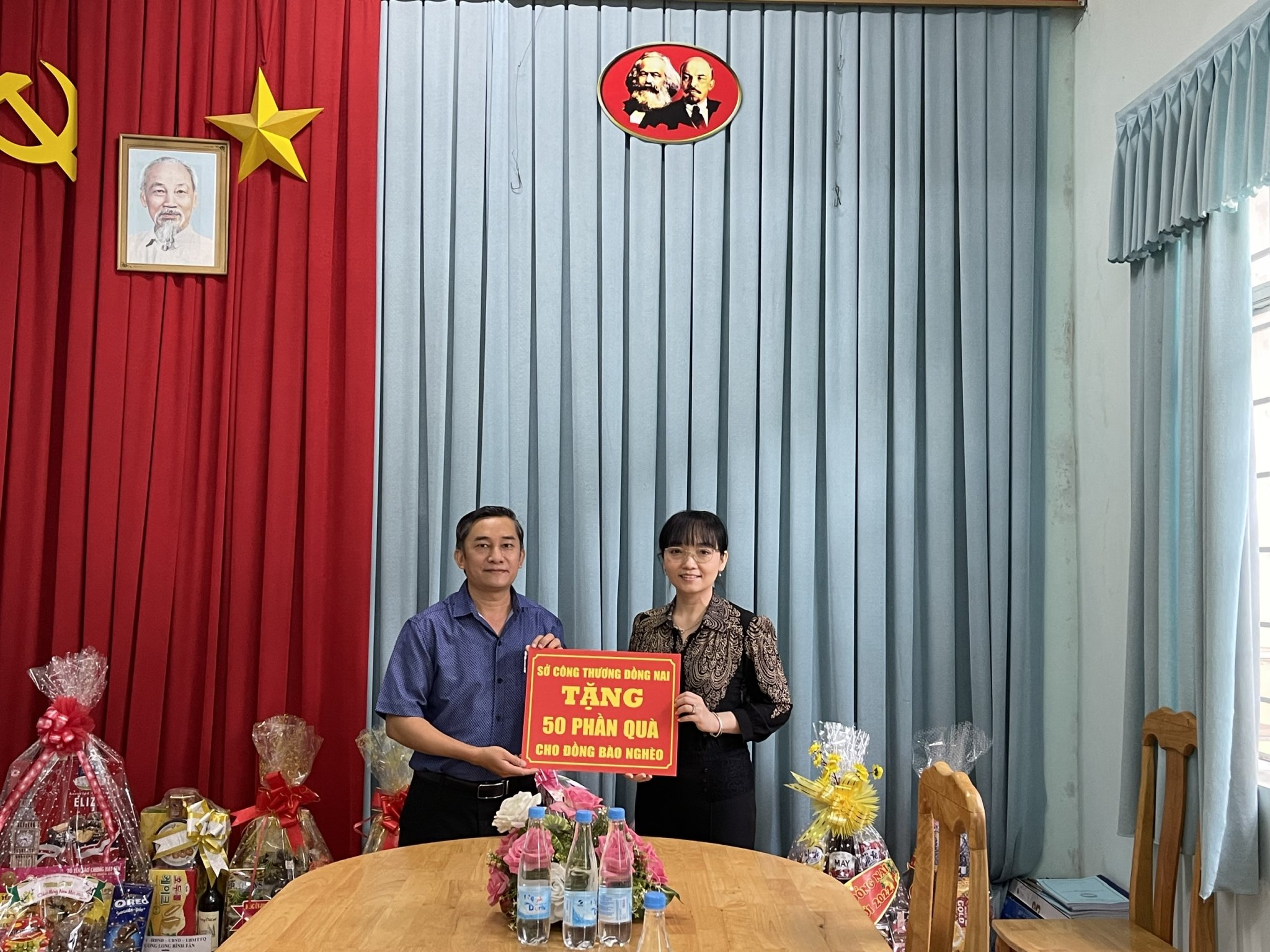Sáng ngày 26/01/2022, Bà Trương Thị Mỹ Dung - Giám đốc Sở Công Thương đã dẫn đoàn Sở Công Thương đi tặng quà cho các hộ nghèo, hộ chính sách khó khăn trên địa bàn Tp. Biên Hòa. Đại diện cho các hộ nghèo, hộ chính sách khó khăn Tp. Biên Hòa, ông Nho Văn Lịnh – Phó Chủ tịch UBMTTQ Tp. Biên Hòa đã tiếp nhận 50 phần quà, mỗi phần trị giá 500.000 đồng, bao gồm: Gạo ST21, Dầu ăn, nước mắm, nước tương, đường, bột ngọt, hạt nêm, lạp xưởng, bánh Chocopie, bún gạo.Tổng số phần quà để trao tặng cho địa bàn 11 huyện trên địa bàn tỉnh là 950 phần, trong đó: 11 huyện là 830 phần; 04 đơn vị thuộc Trung tâm nuôi dạy trẻ khuyết tật và Đoàn khối các cơ quan tỉnh là 80 phần.