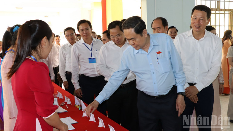 Chủ tịch Quốc hội Trần Thanh Mẫn kiểm tra tại khu vực bỏ phiếu số 17, phường Tân Triều, tỉnh Đồng Nai.