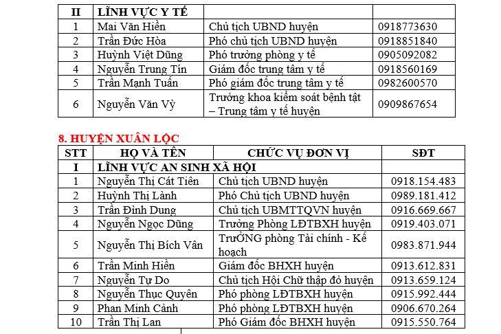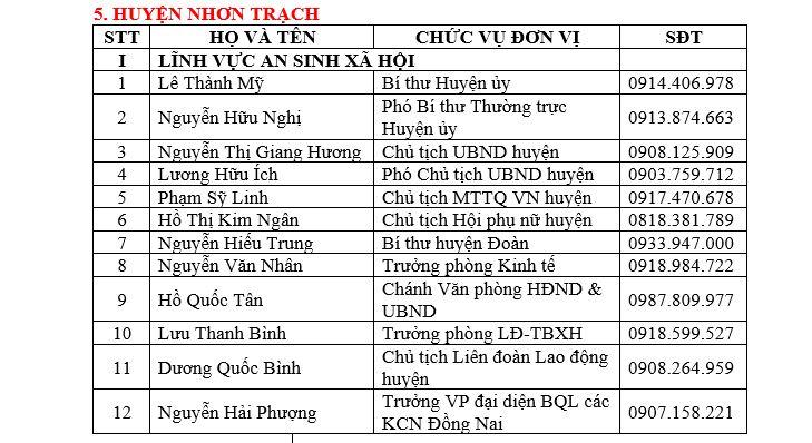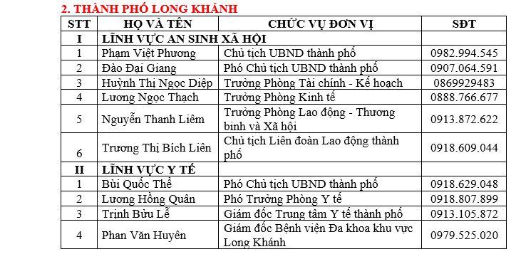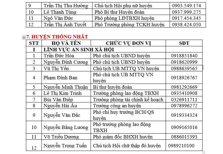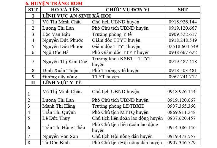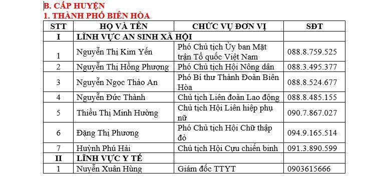 DANH SÁCH ĐƯỜNG DÂY NÓNG VỀ AN SINH XÃ HỘI VÀ Y TẾ CỦA TỈNH VÀ CÁC HUYỆN, THÀNH PHỐ TRÊN ĐỊA BÀN TỈNH ĐỒNG NAI