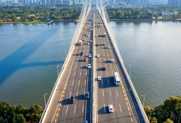 Đường trên cao nhiều tầng giúp tiết kiệm không gian nhưng vẫn đảm bảo số làn xe đồng bộ với cầu chính Phú Mỹ 2. Phương án này cũng hạn chế xung đột giao thông tại các nút giao với đường Nguyễn Lương Bằng, Huỳnh Tấn Phát.