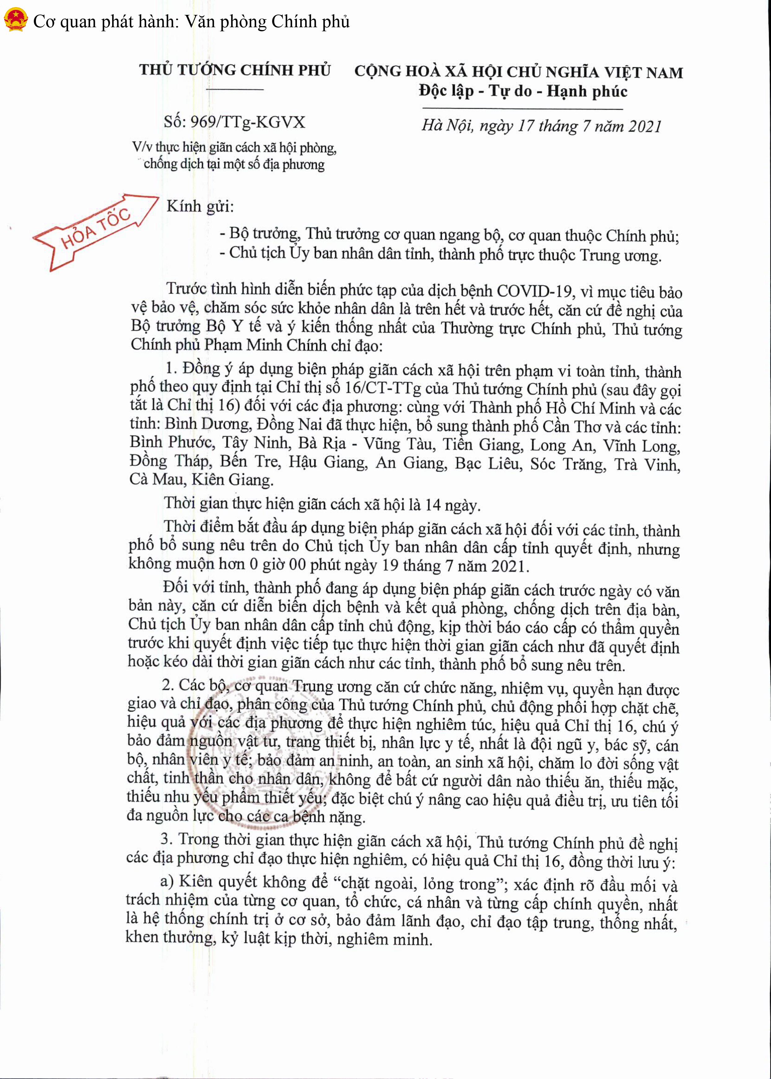 Thời gian thực hiện giãn cách xã hội là 14 ngày.