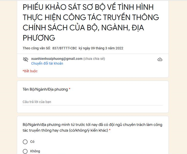 Bộ Thông tin và Truyền thông tổ chức khảo sát đội ngũ truyền thông chính sách tại địa chỉ https://docs.google.com/forms/d/e/1FAIpQLSd